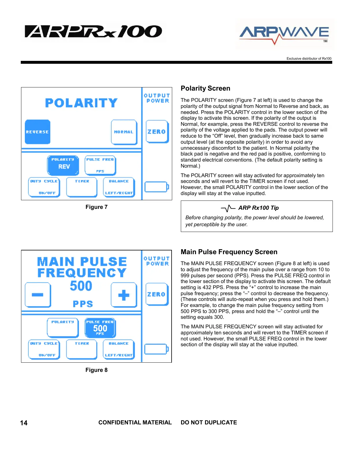 The MAIN PULSE FREQUENCY screen (Figure 8 at left) is used