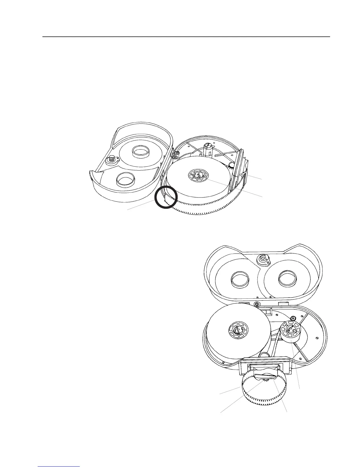 • Turn the drive gear counter clockwise until the film reaches the loop length marking.