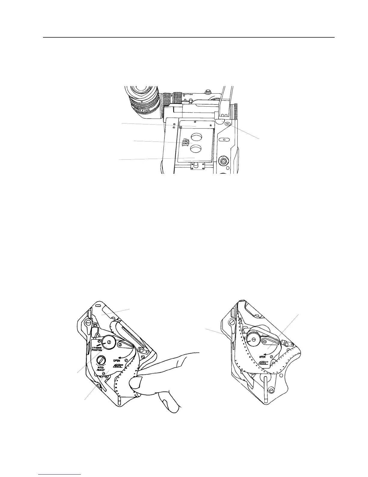 • Pull the film loop out of the camera (see left graphic below) and push it into the upper loop area.