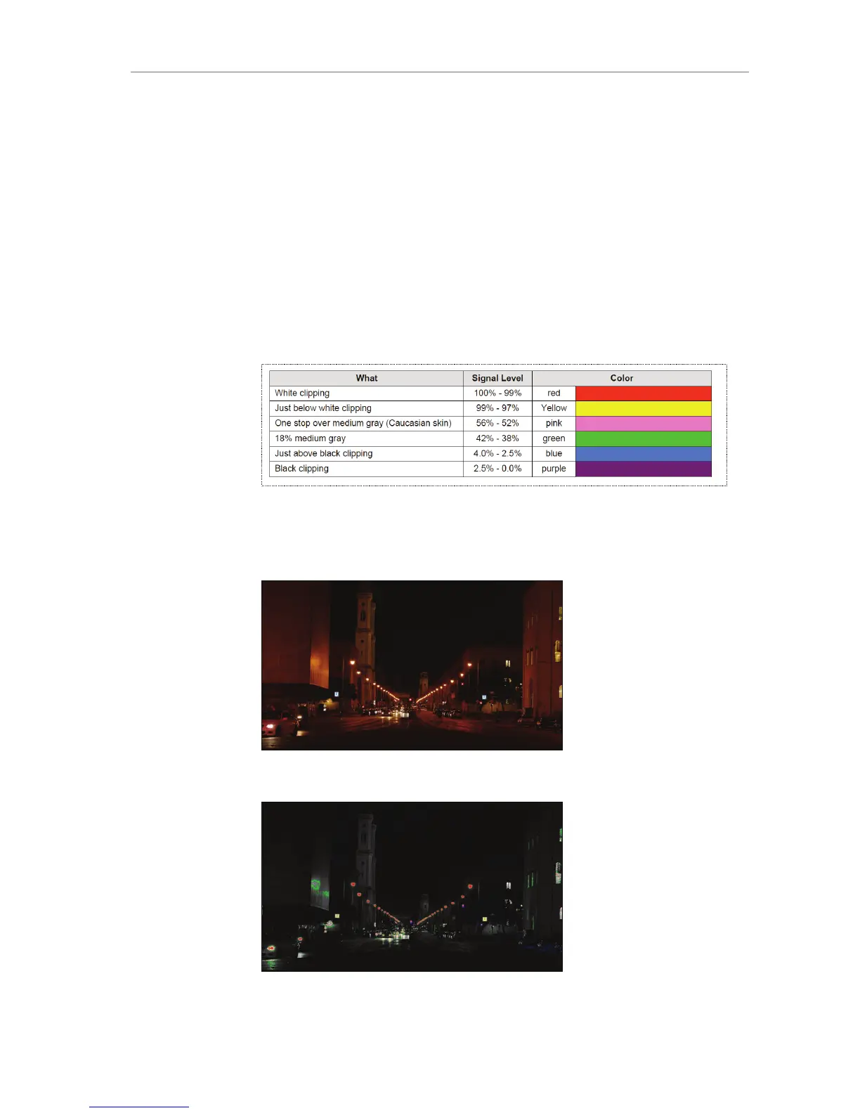 Six different colors are used to show the important luminance ranges.