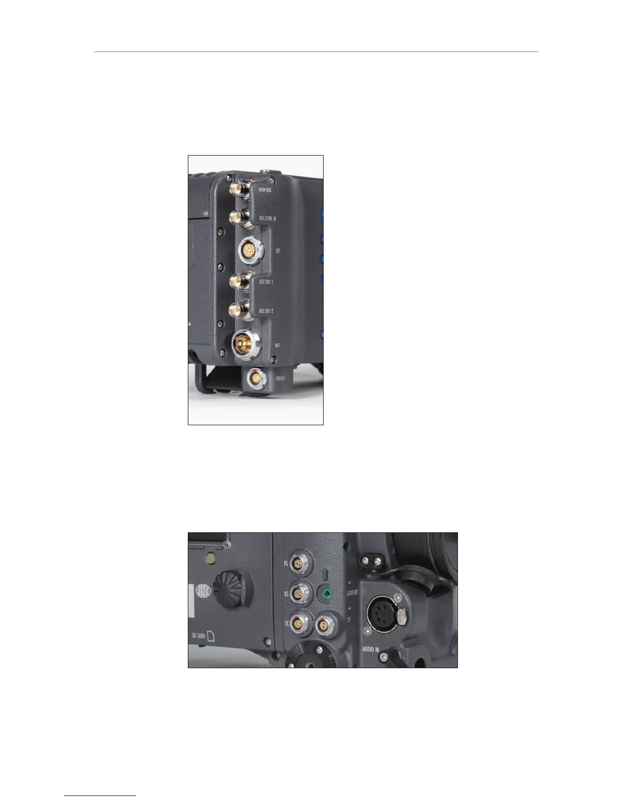 out, AUDIO IN, SD CARD (camera bottom)