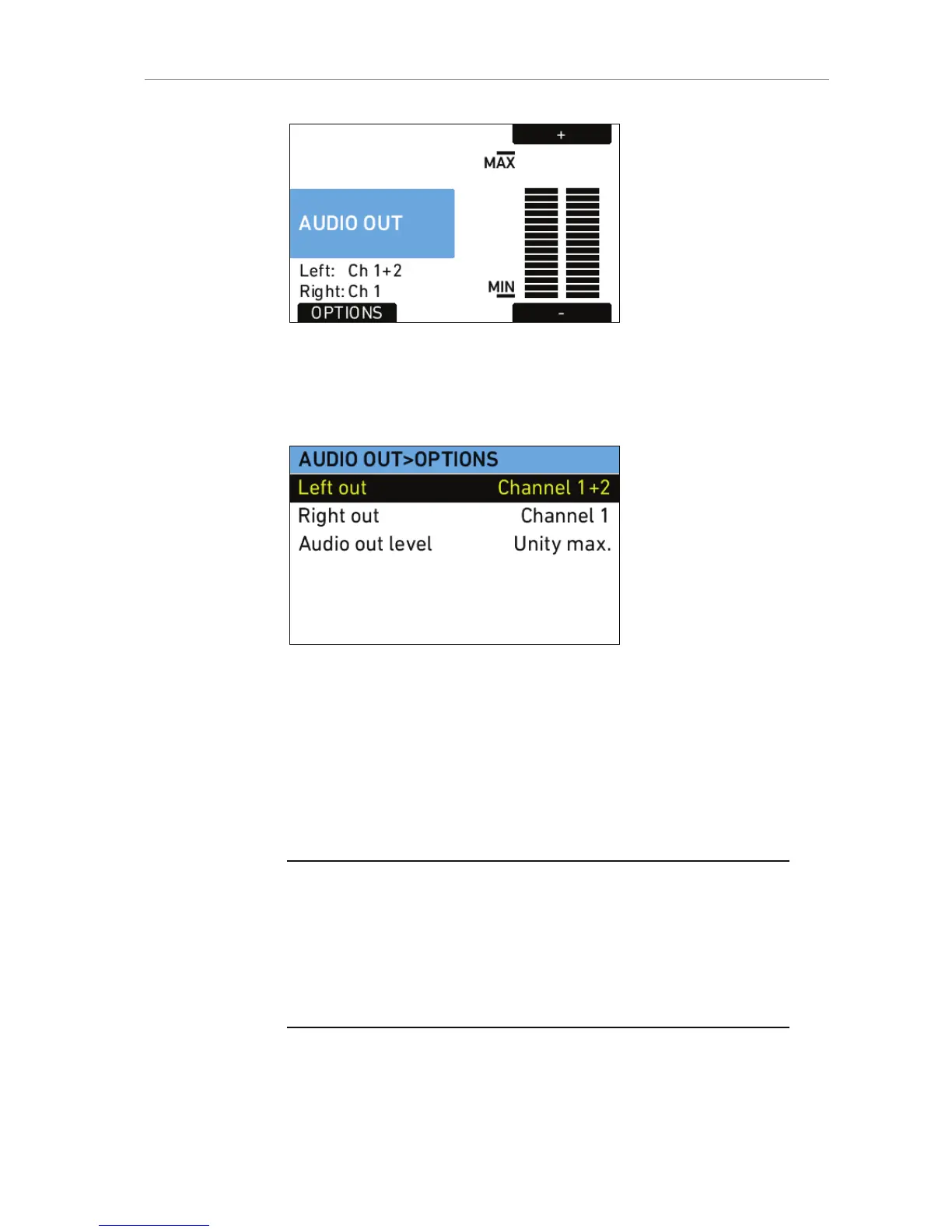 Press the AUDIO OUT button to open the AUDIO OUT>OPTIONS screen