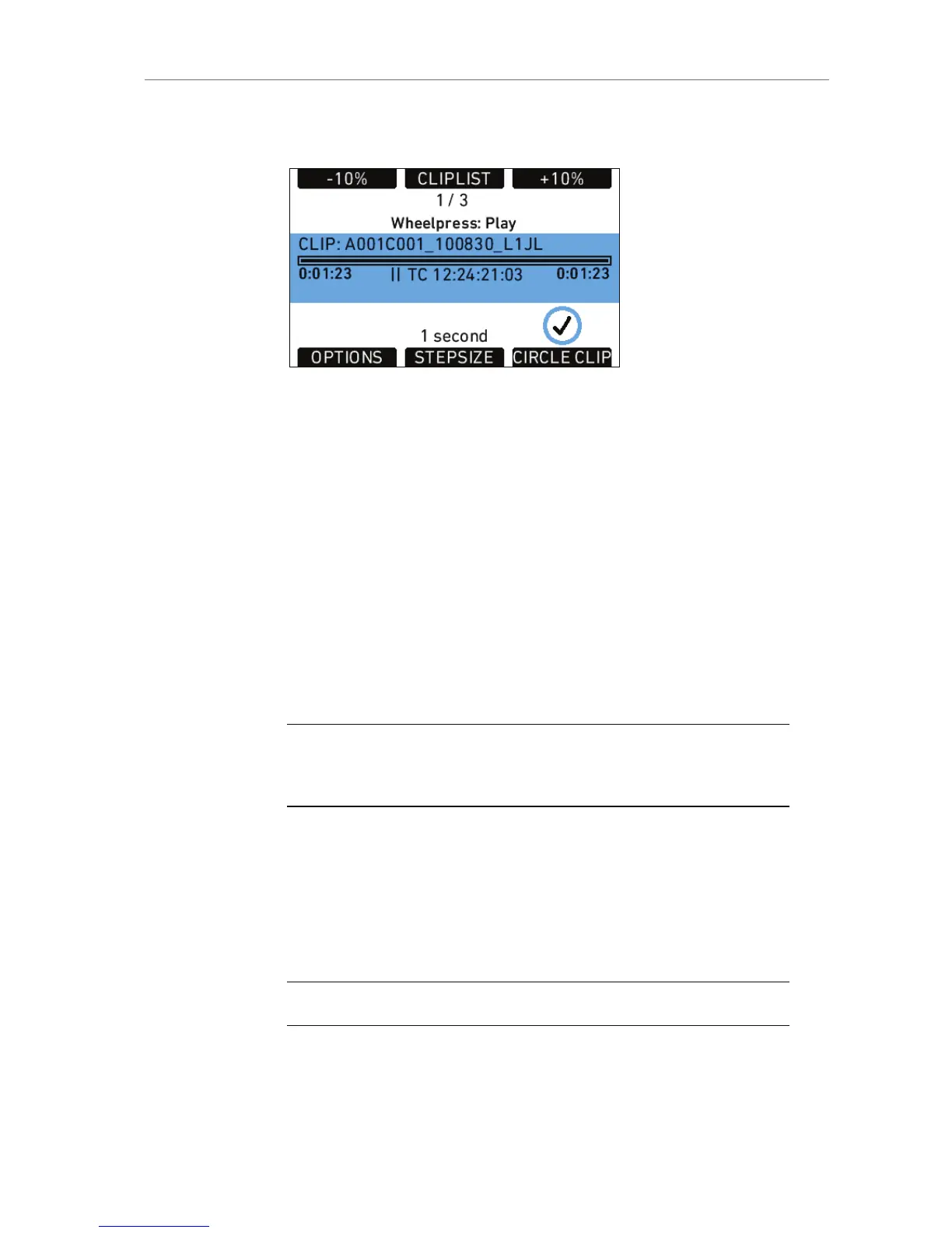 -10% Rewind the current clip by ten percent of the clip