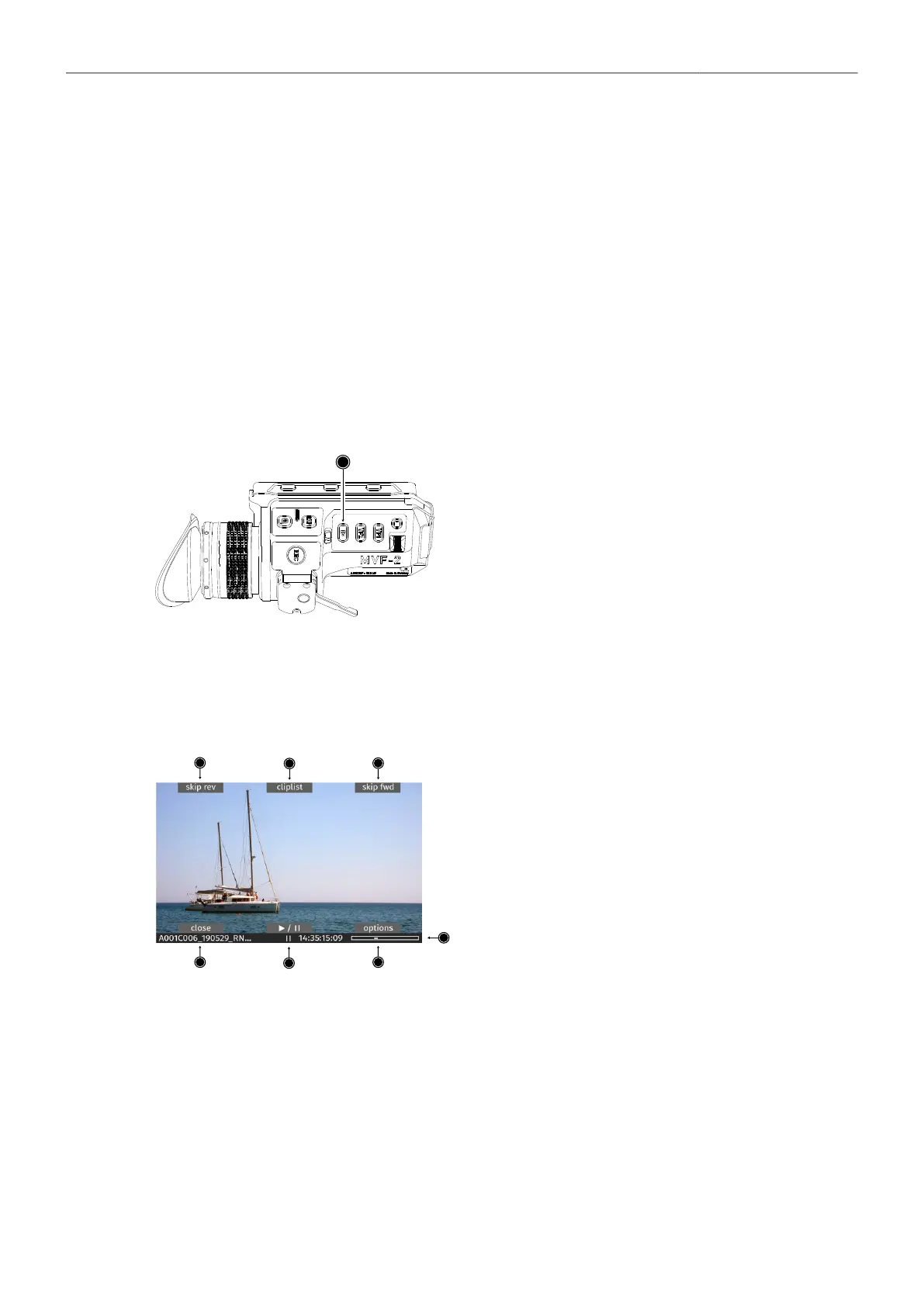 Shows clip name, timecode and playback progress bar of the selected clip.