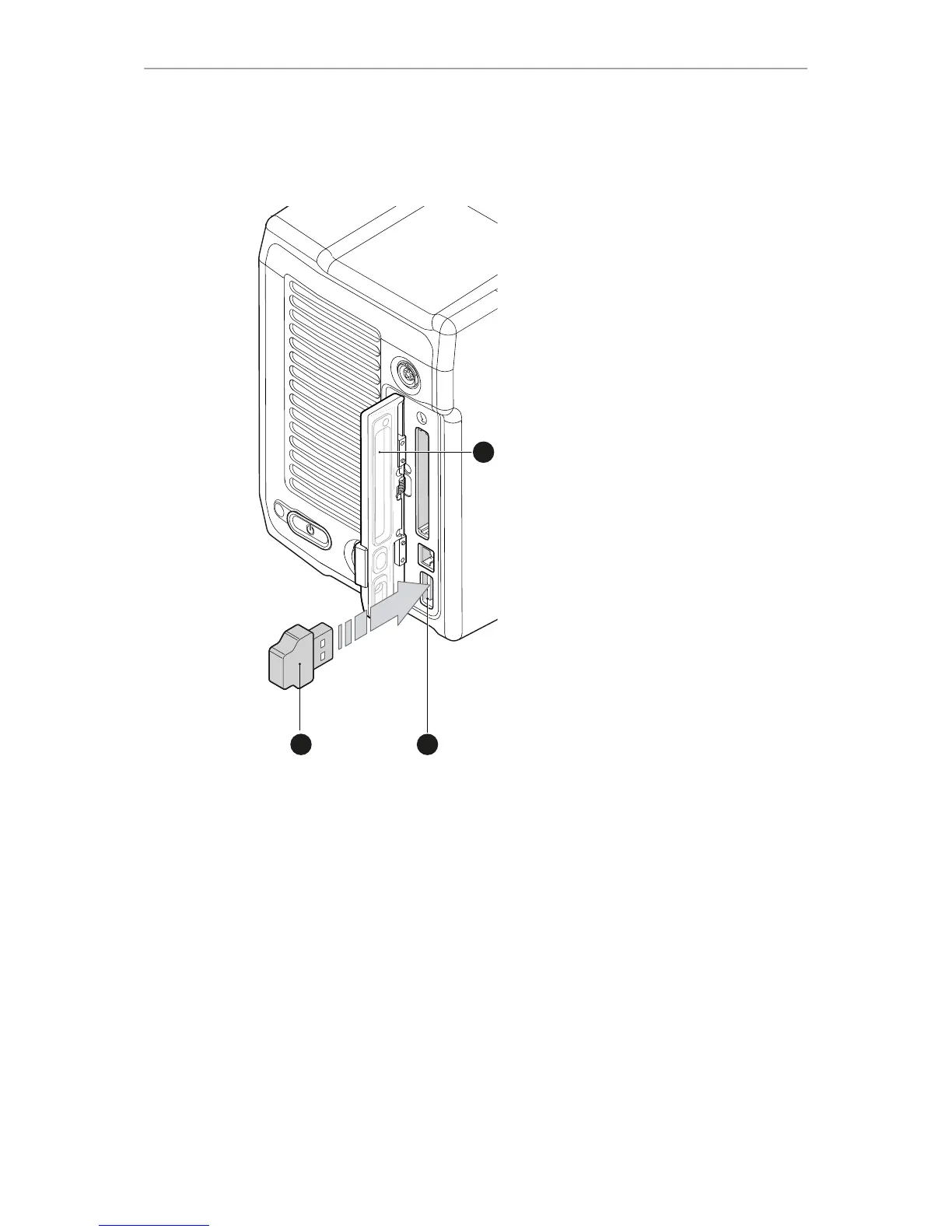 2. Connect a FAT-formatted USB stick (3) to the camera (2).