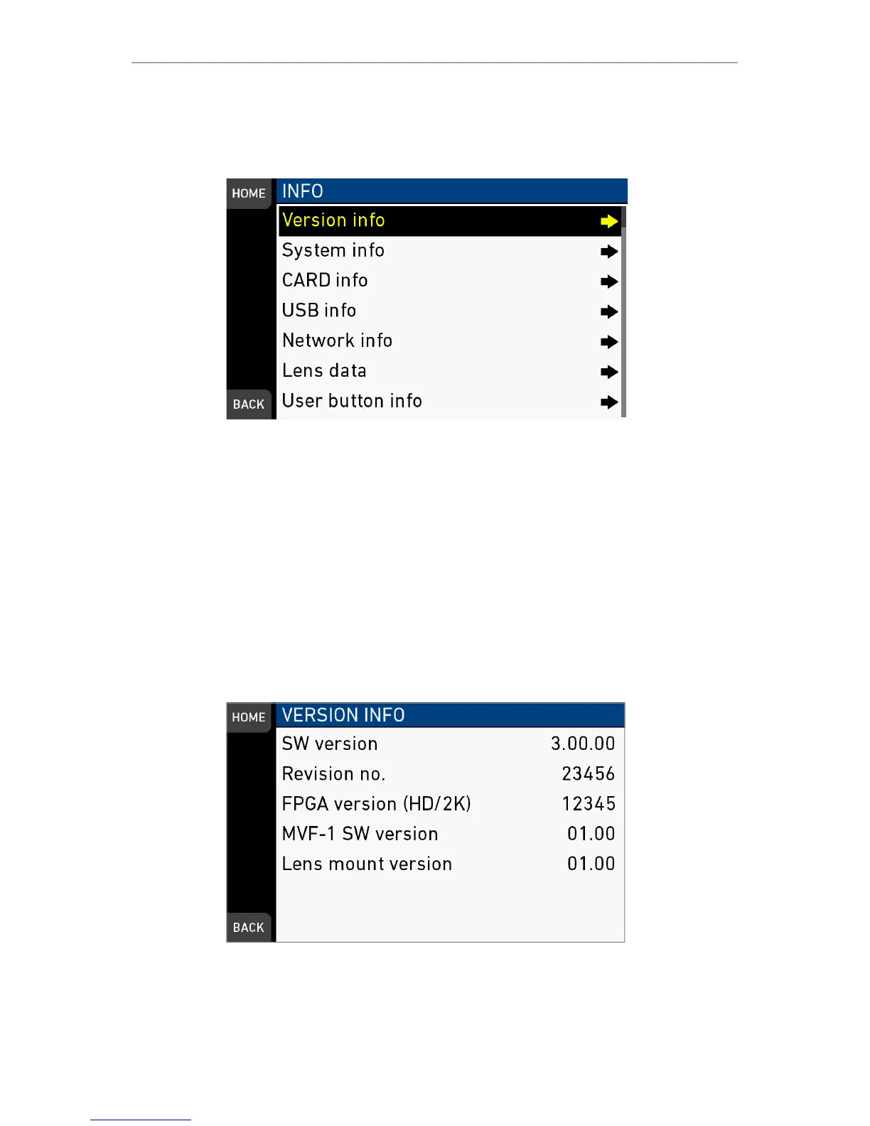MVF-1 SW version: SW version of MVF-1 viewfinder (if connected).