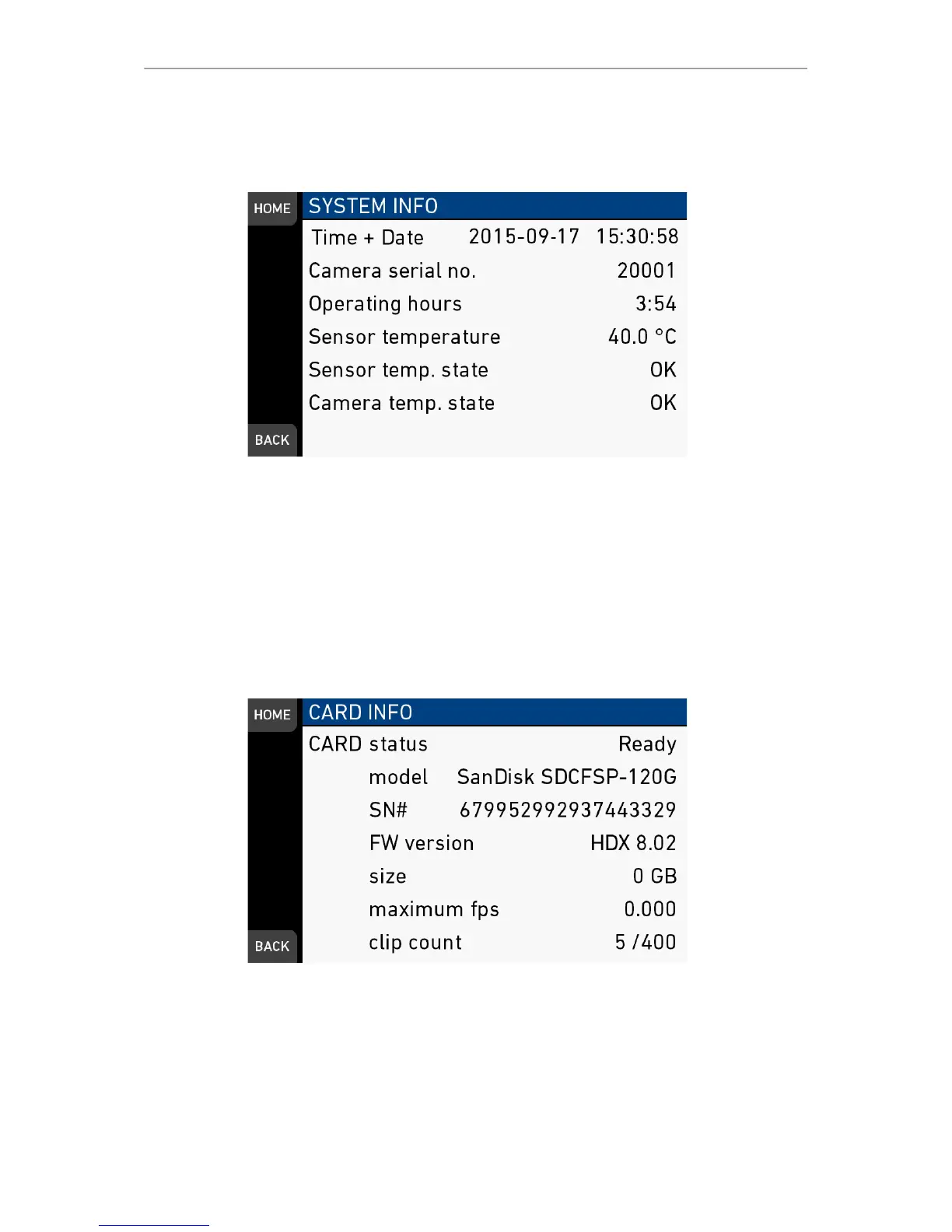 Camera temp. state: Rates the camera temperature into the following states: OK,
