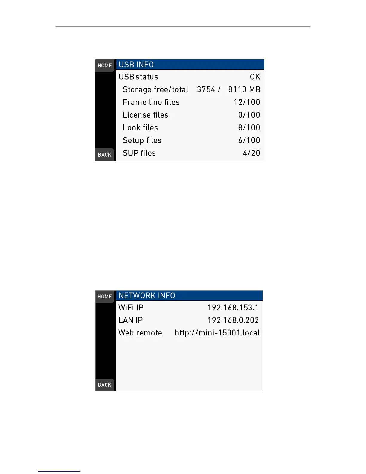 Look files: Shows the number of look files on the USB medium, and the maximum