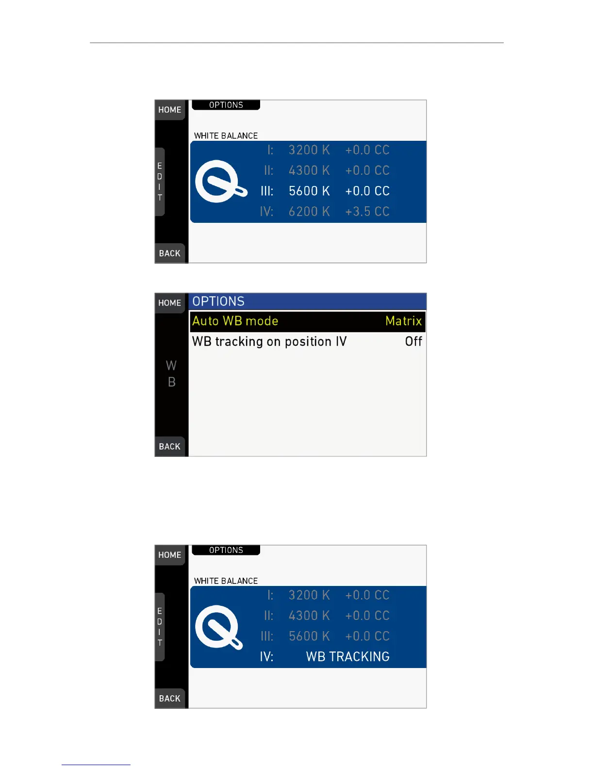 WB tracking on position IV: When set to On, moving the WB switch to position IV