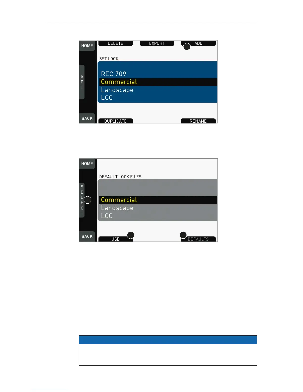6. Note: ADD is inactive/gray if the maximum number of looks (20) is installed.