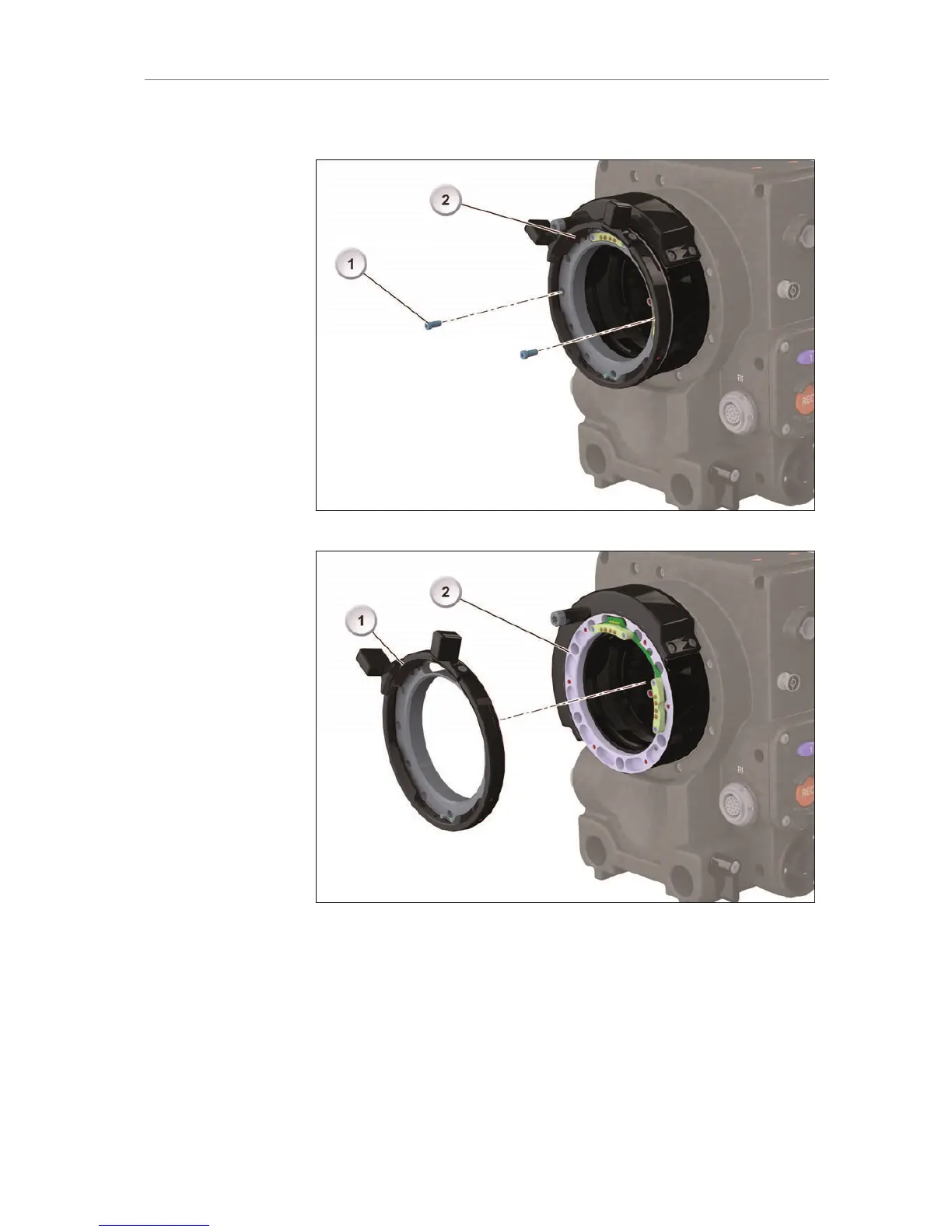 4. Remove the lens lock (1) from the PL mount. Keep all installed