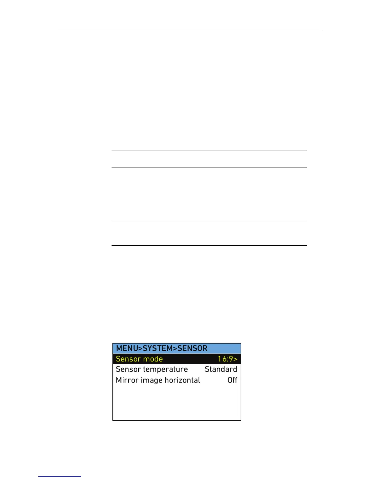 1. In the System menu, select Sensor.