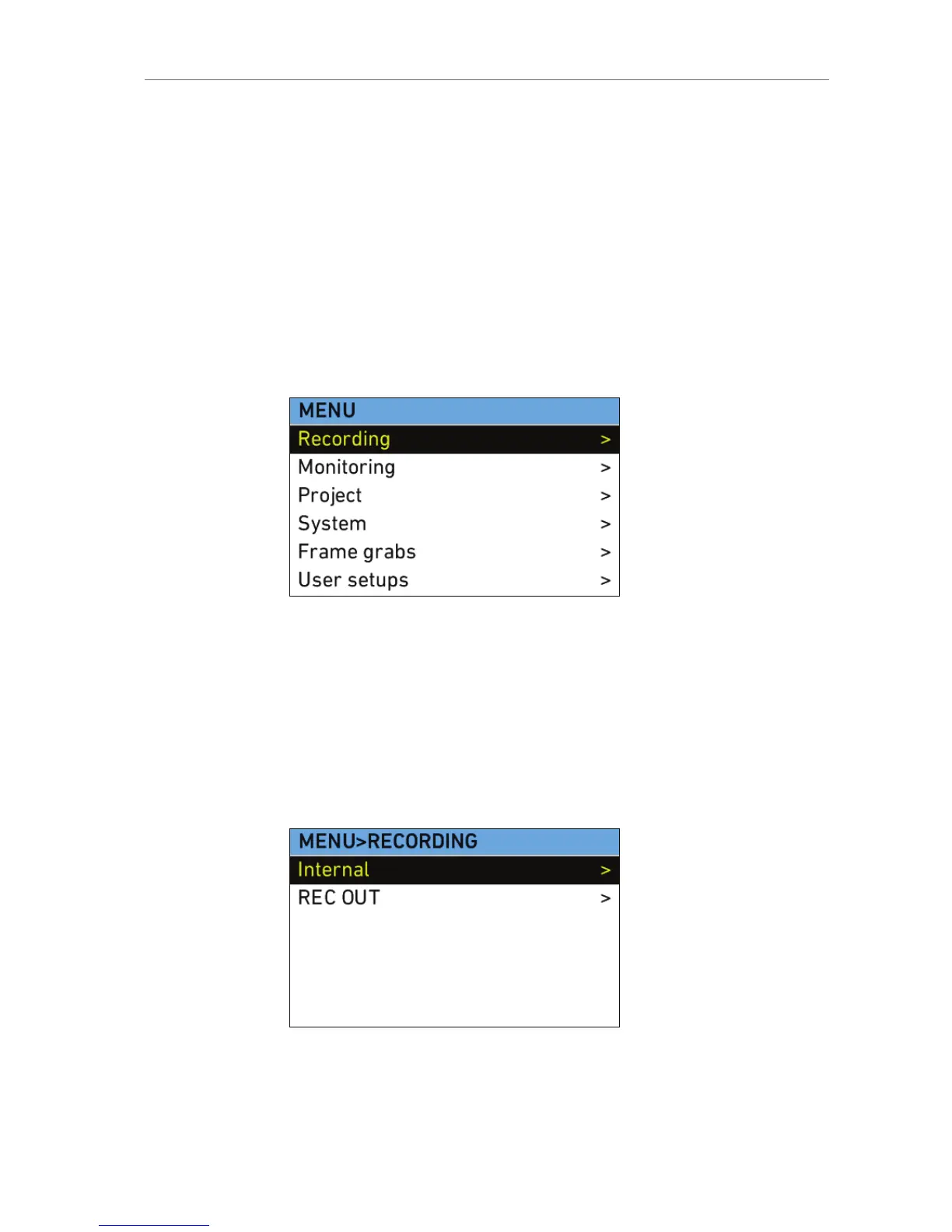 outputs. The RECORDING menu contains two submenus:
