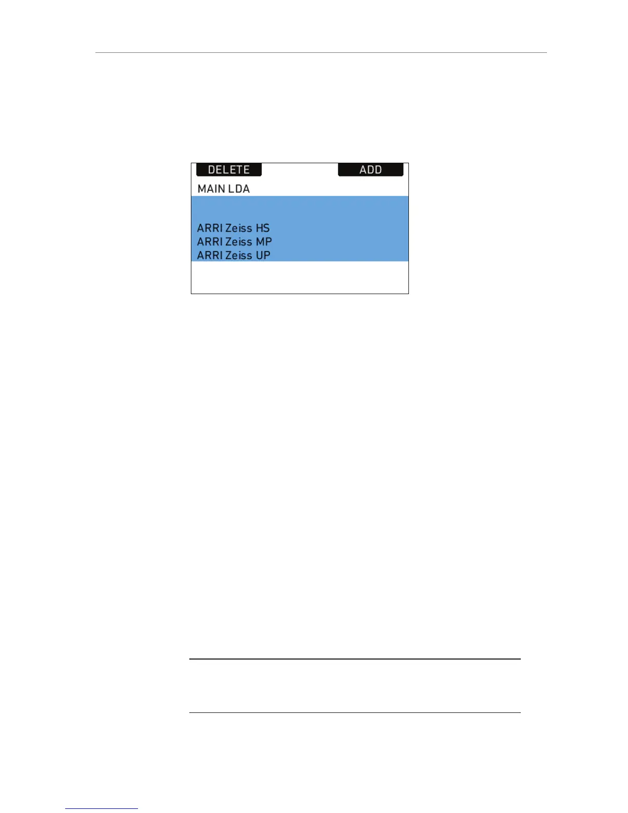 necessary. Press OPTIONS on the USER LDA screen to access the LDA