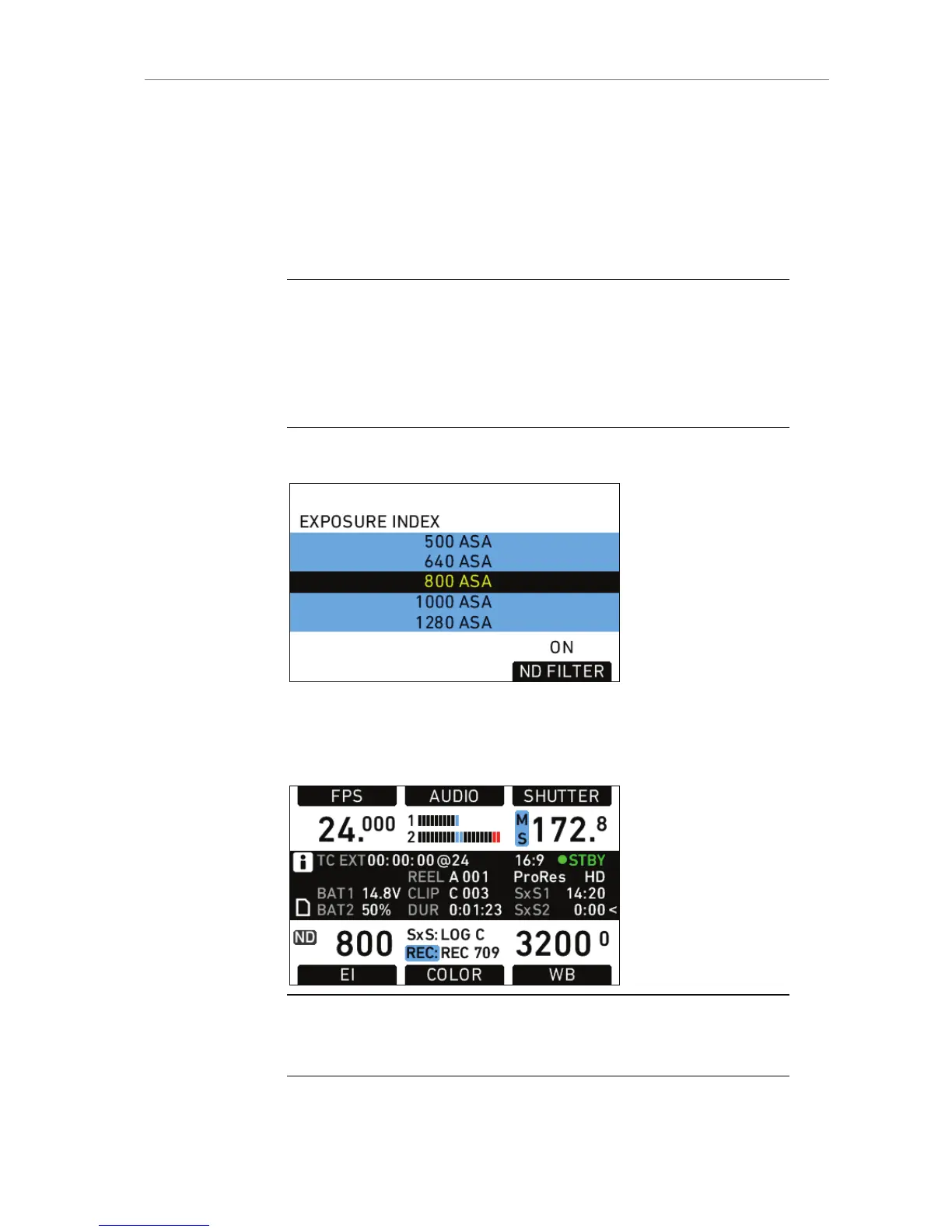 Note: The use of the internal ND filter has no influence on the EI rating of the