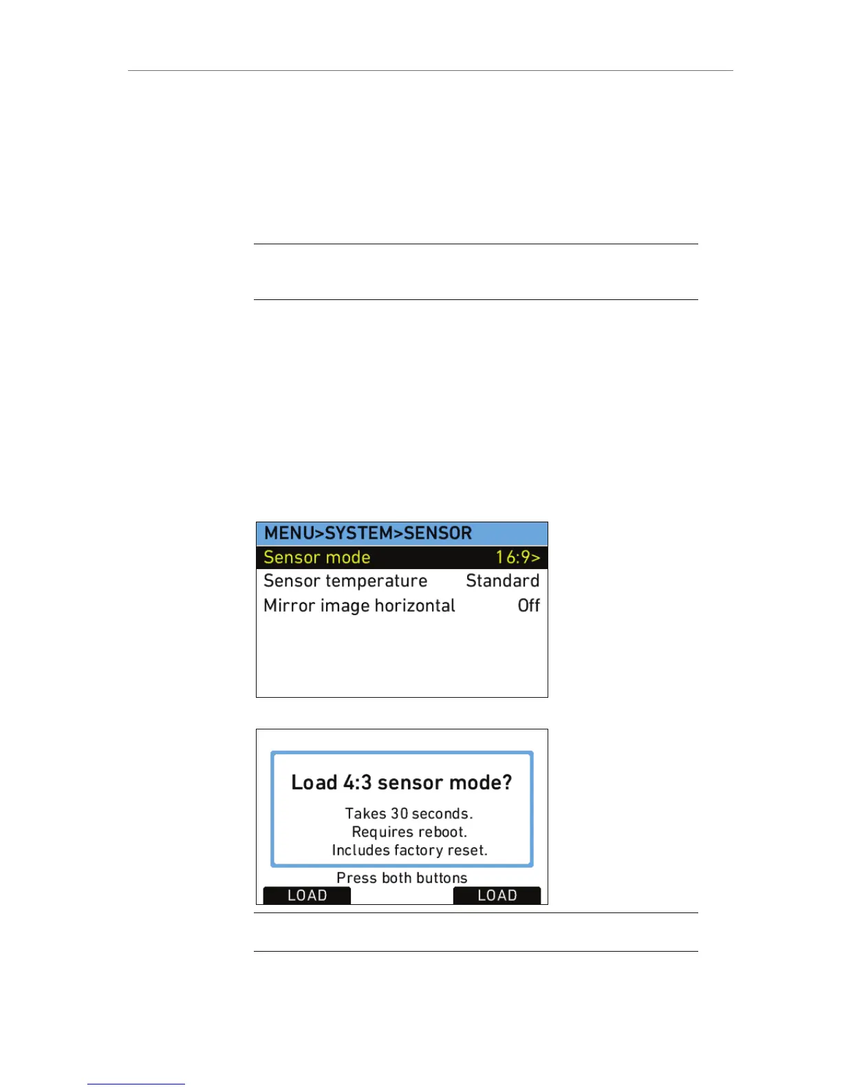 Loading the new sensor mode takes approximately 30 seconds
