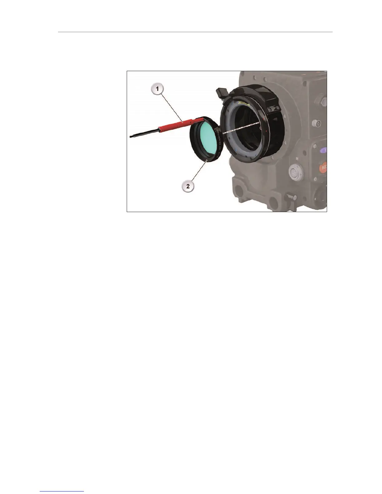 3. Pull the filter (2) from the bottom ring in the camera's PL mount. If