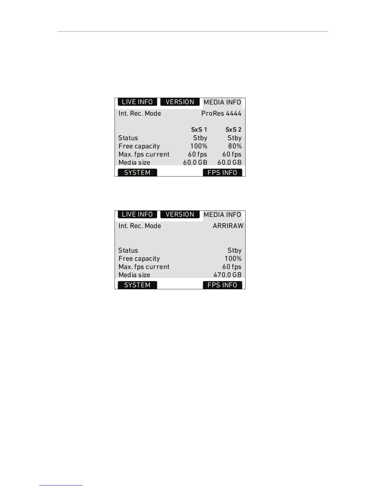 Figure 63: MEDIA INFO screen with SxS module
