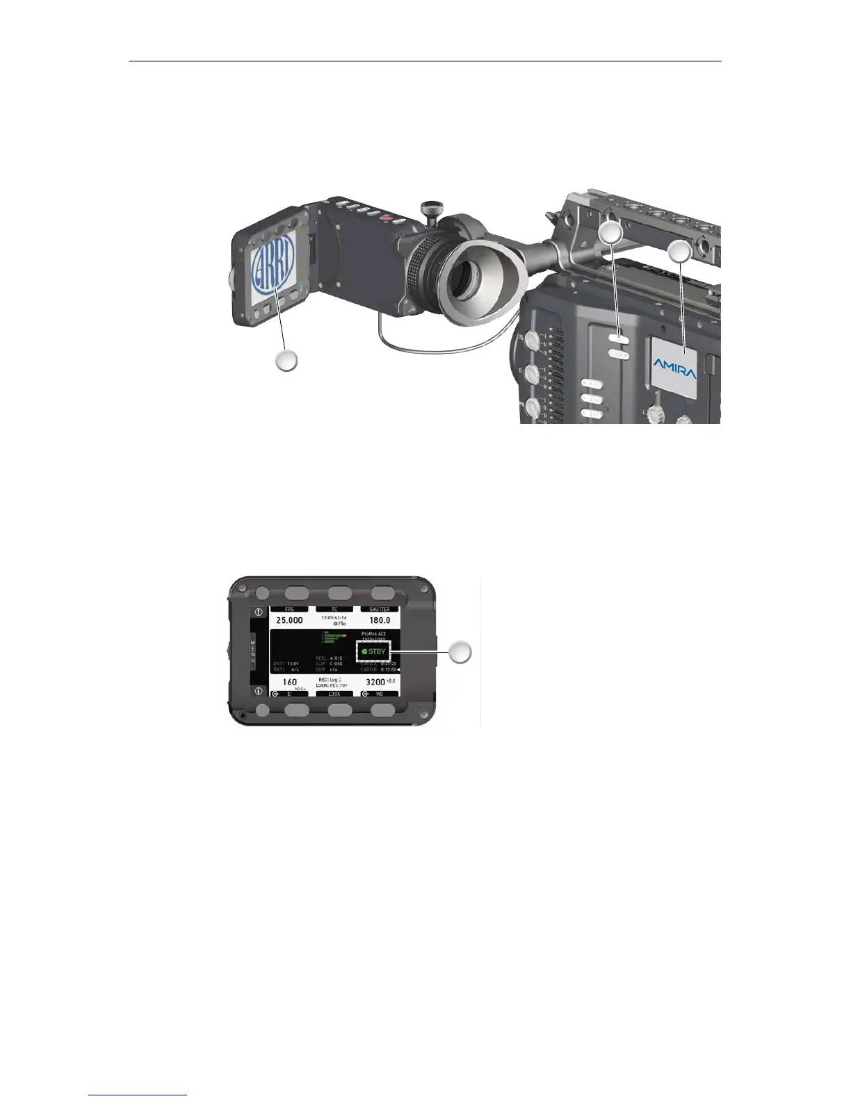2. The ARRI and AMIRA logos appear in the audio display (2) and monitor (3).