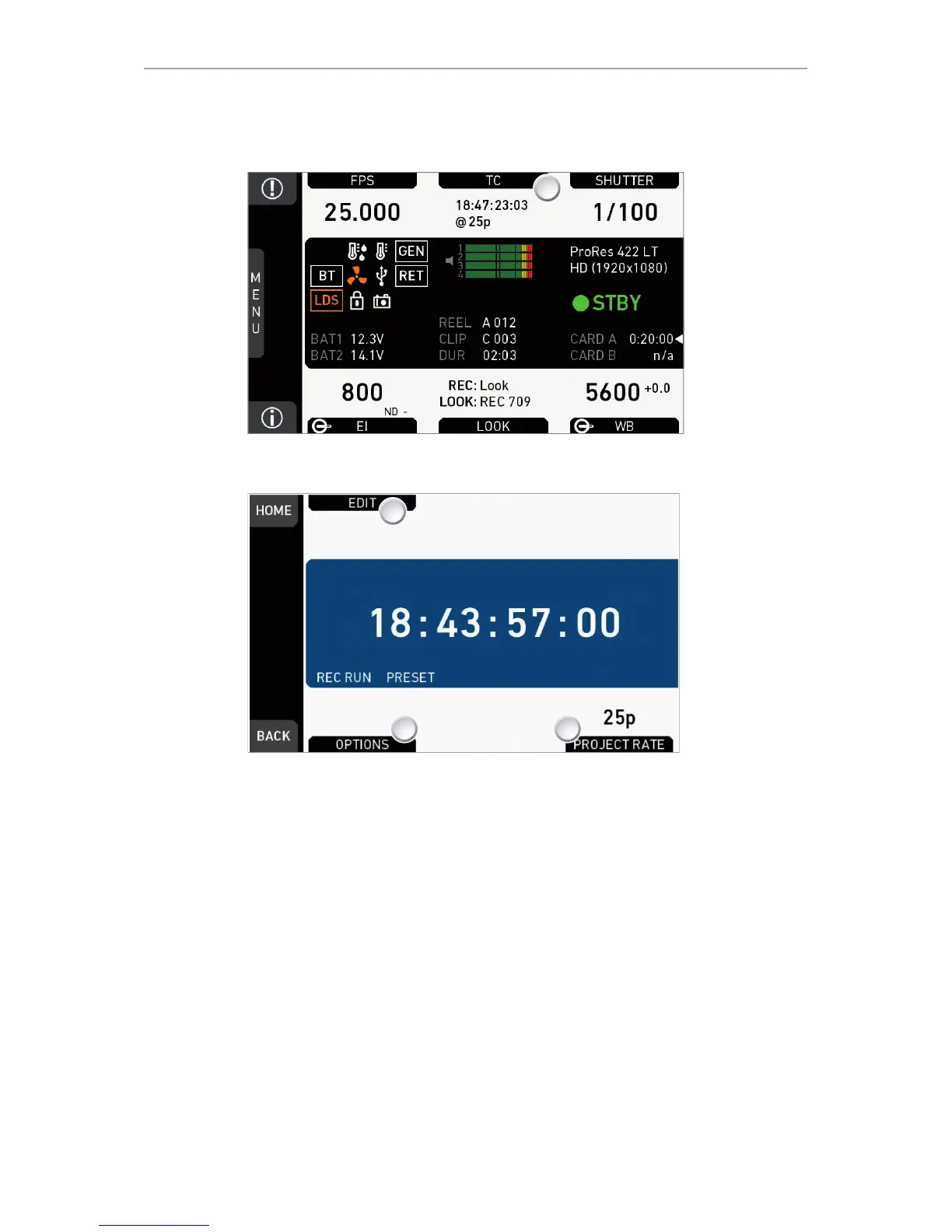2. Current timecode and project rate show.