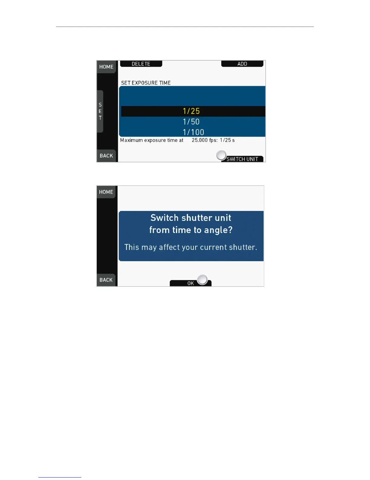 4. The shutter unit has changed (e.g. from time to angle).