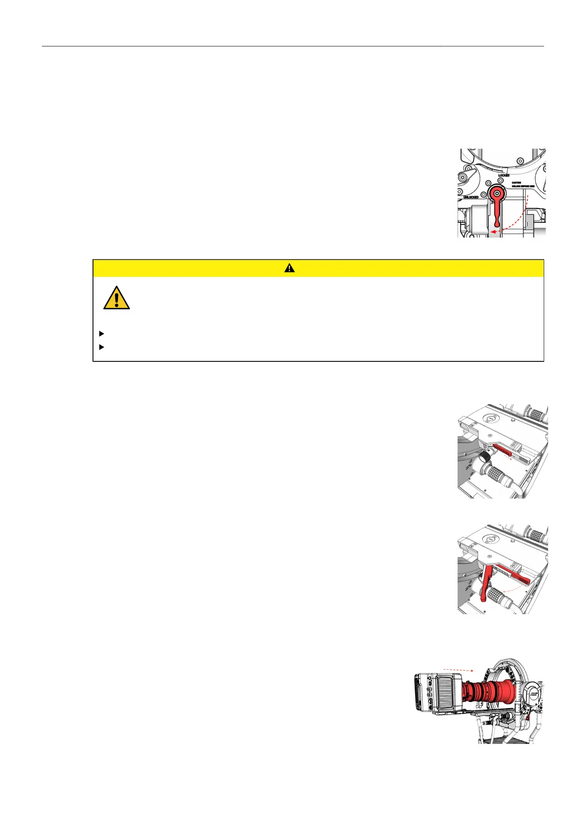 Do not pull on the dovetail clamp mechanism lever before the safety lock has been released!