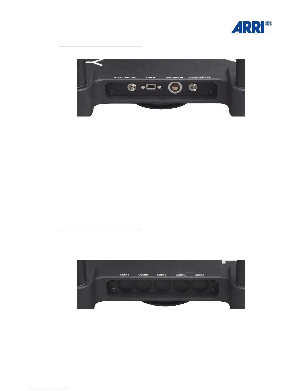 STAB ON/OFF: Power On/ Off switch for the TRINITY stabilizer system.