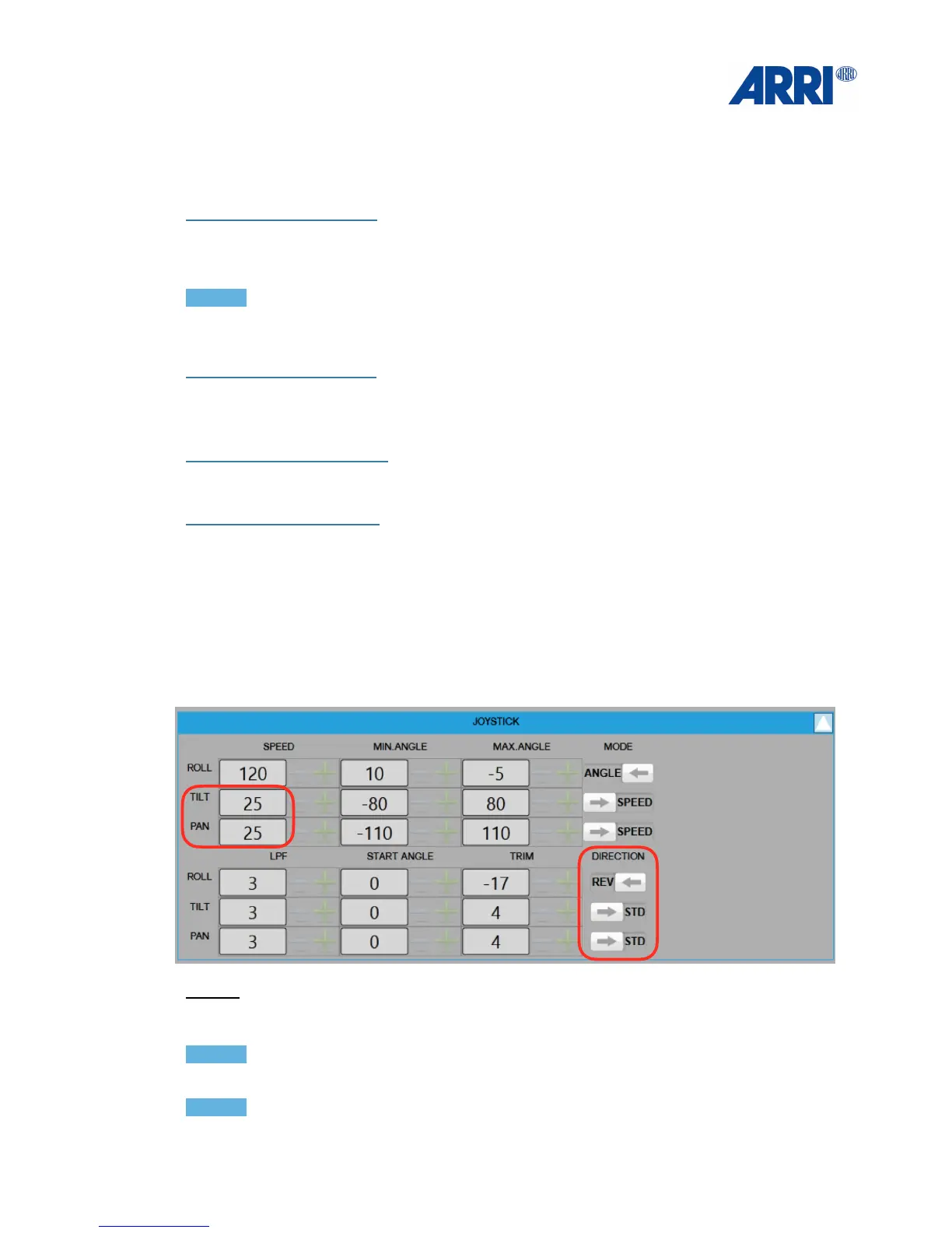 You can set the speed, the ramp and the damping as well as the direction of the joystick.