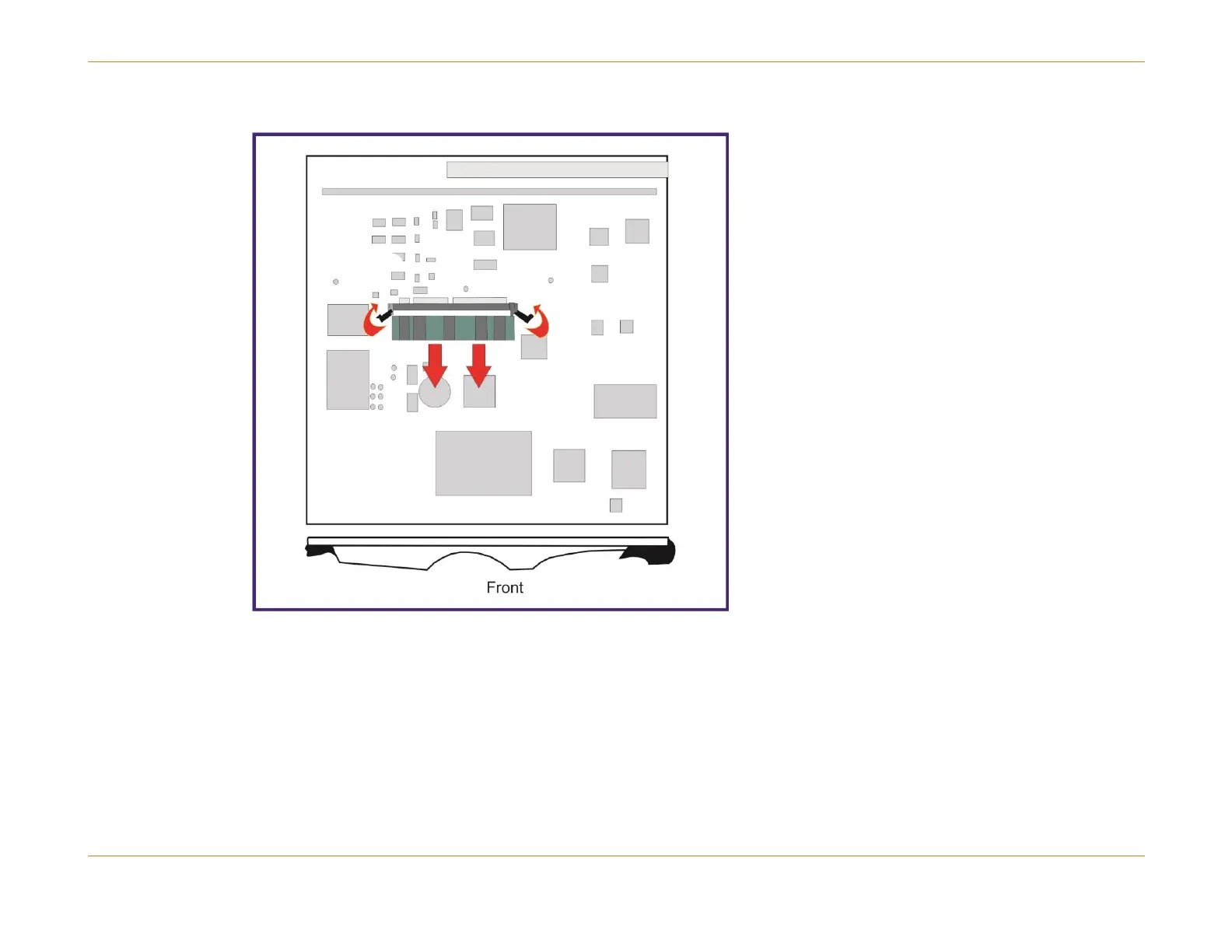 1. Replace the removed DIMM module with the new 1GB DIMM shipped in the Upgrade Kit. The label must face upward