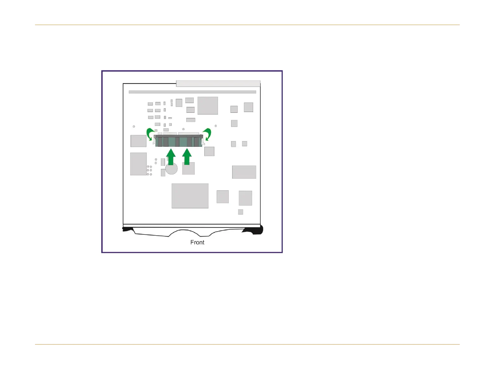 your thumbs. See next figure. Slide the DIMM into the connector until the latches at both ends snap into the locking