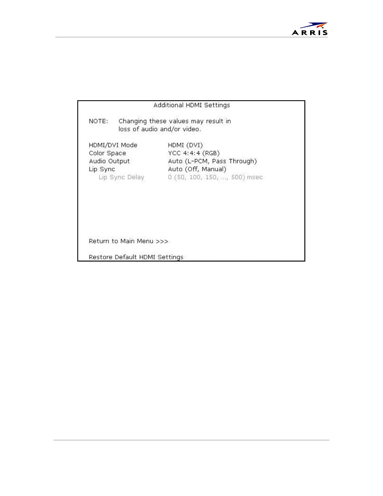 Additional HDMI Settings Screen