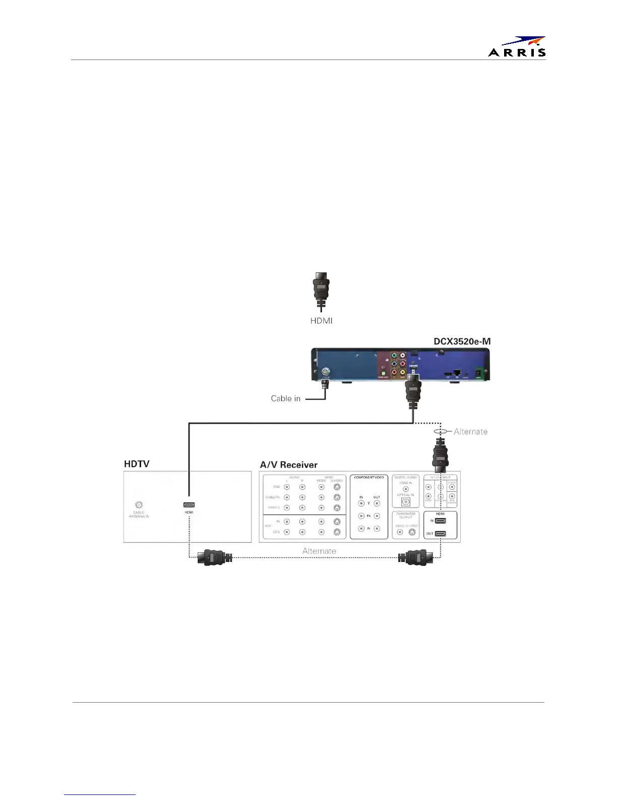 Note: Optional HDMI connection to A/V Receiver shown but not required.