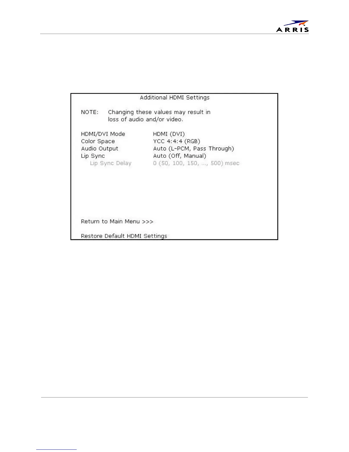 Additional HDMI Settings Screen