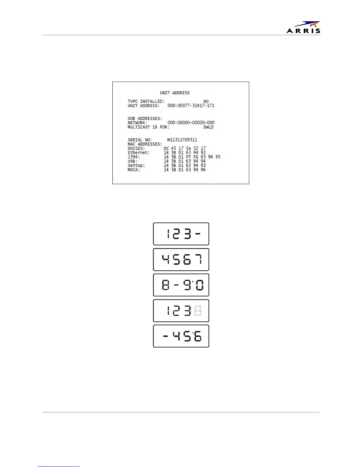 Arris DCX3520e-M - Unit Address; Figure 29: Unit Address Diagnostic Screen; Figure 30: Front Panel Display of a Unit Address