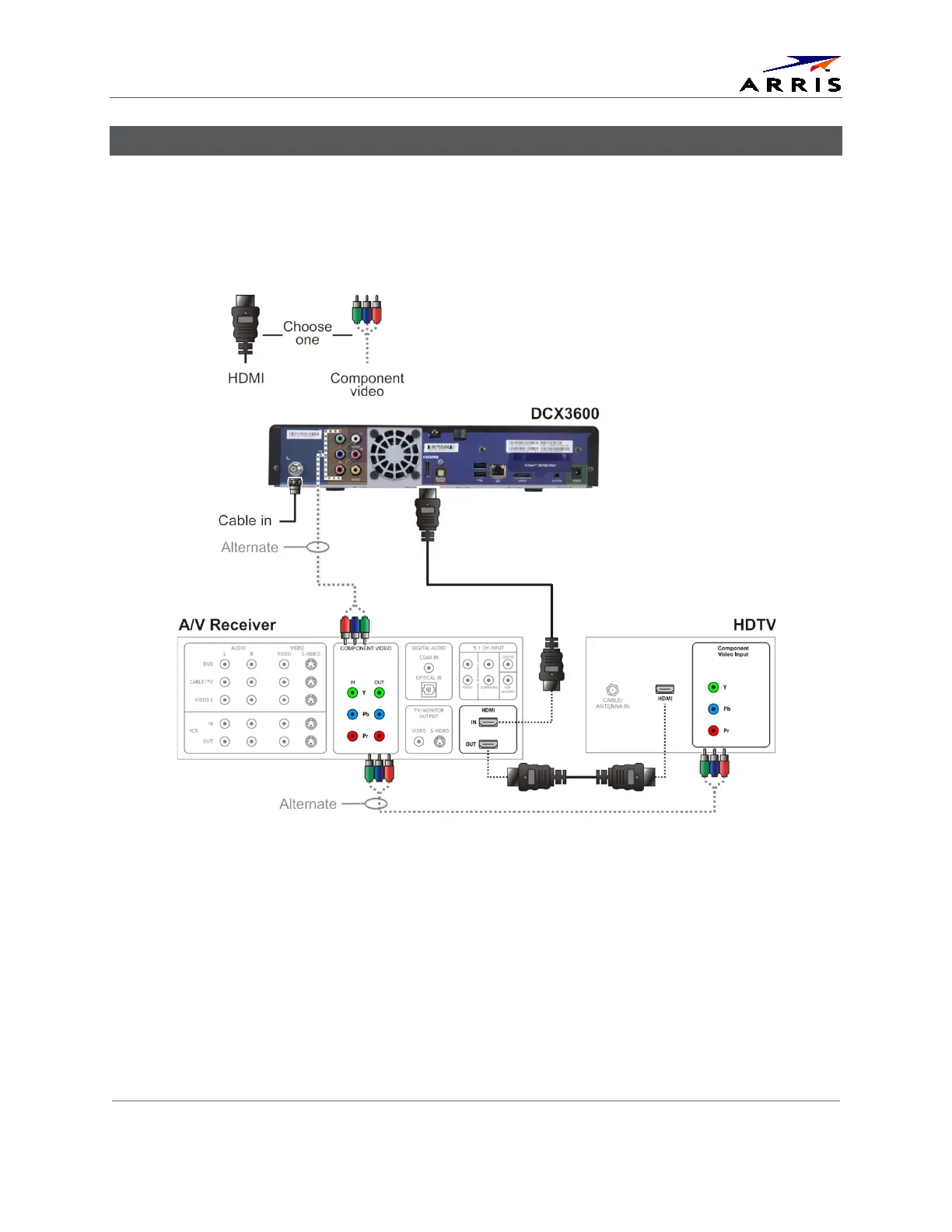 Note: If the A/V receiver includes an HDMI input and output, the DCX3600-M’s HDMI output can be