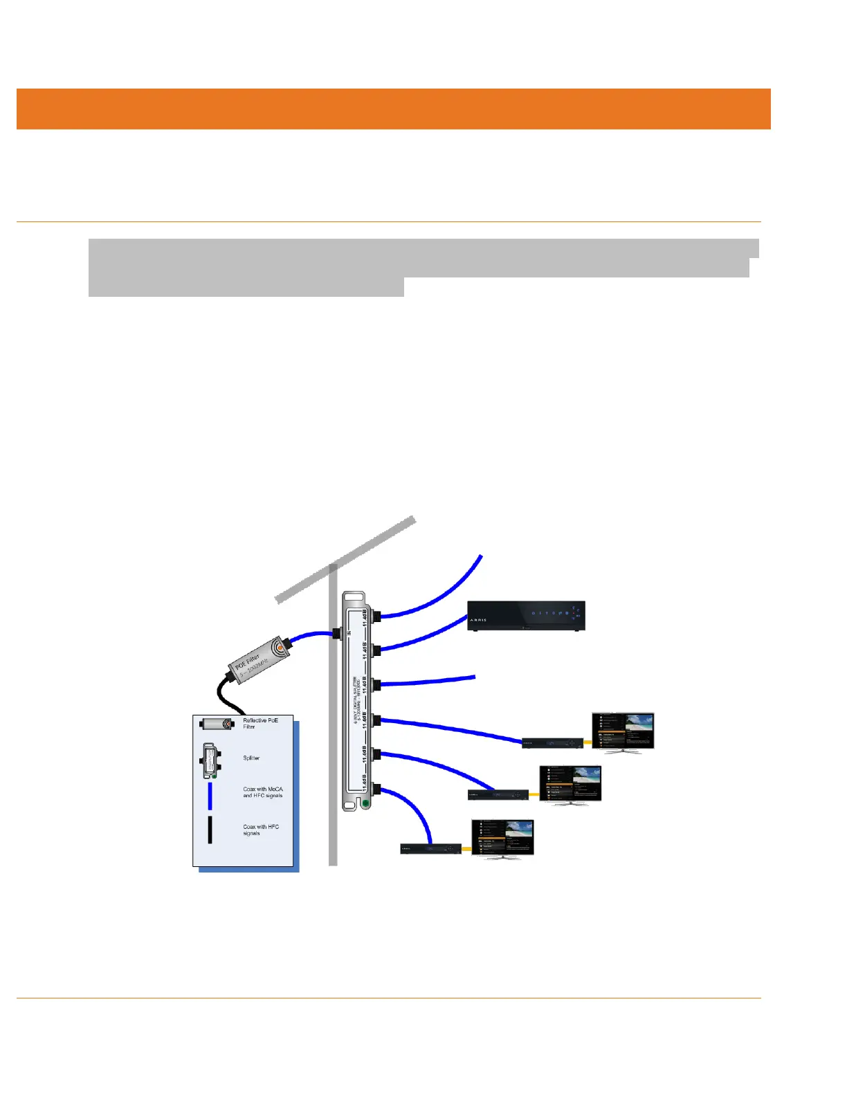 The Media Gateway should be placed off the first splitter at the cable entrance to the house. An