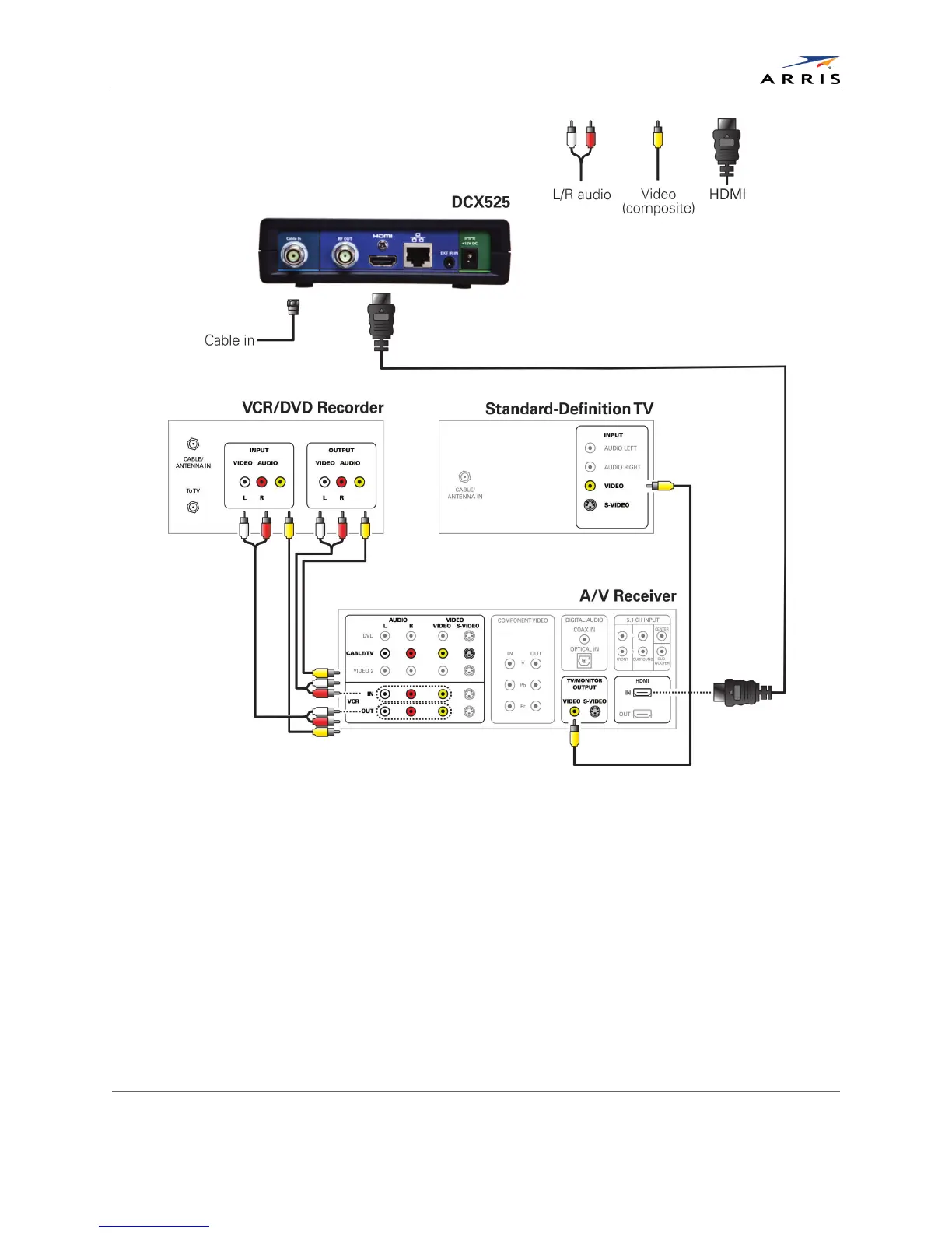 Arris DCX525 - Figure 6: Connecting an A;V Receiver, SDTV, and VCR;DVD Recorder