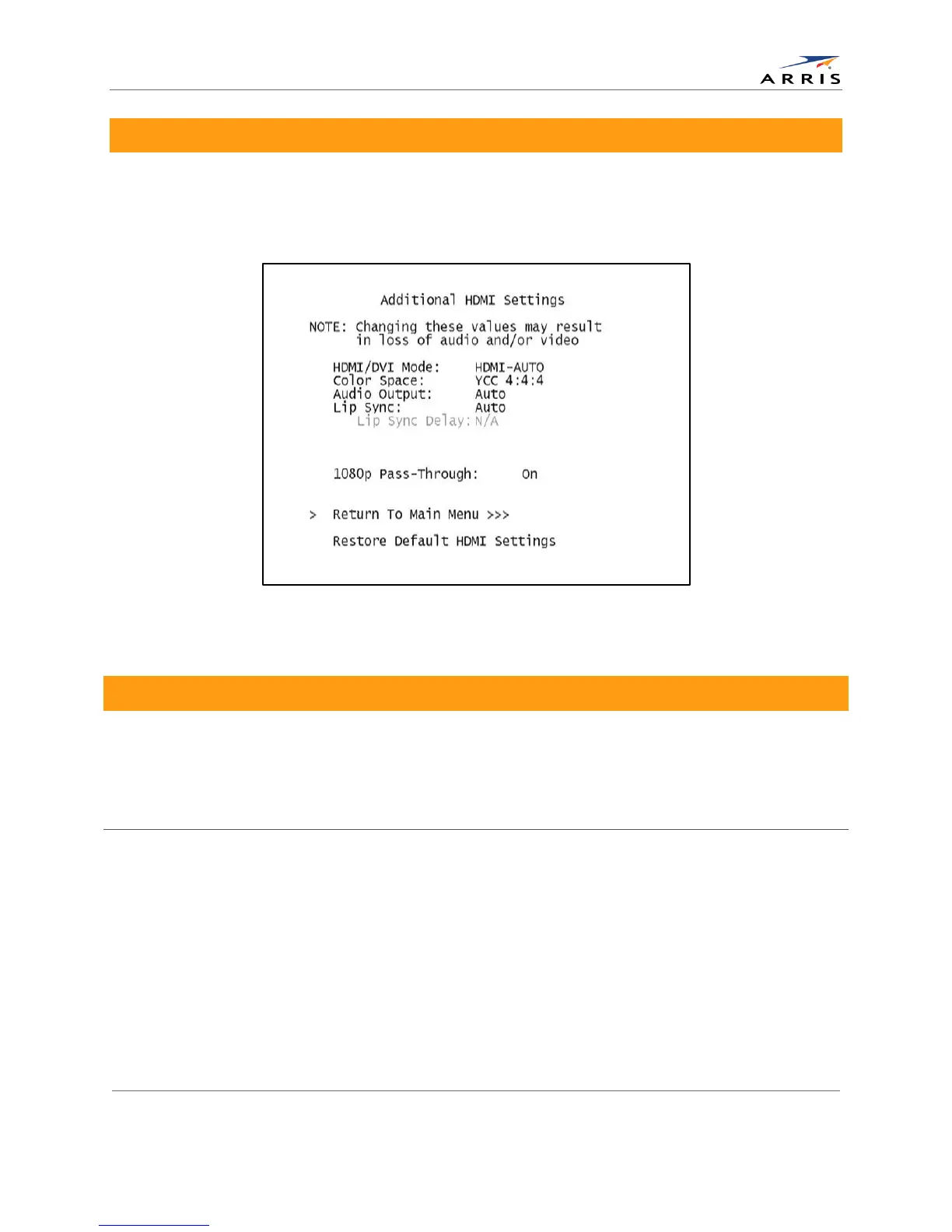 Additional HDMI Settings Screen