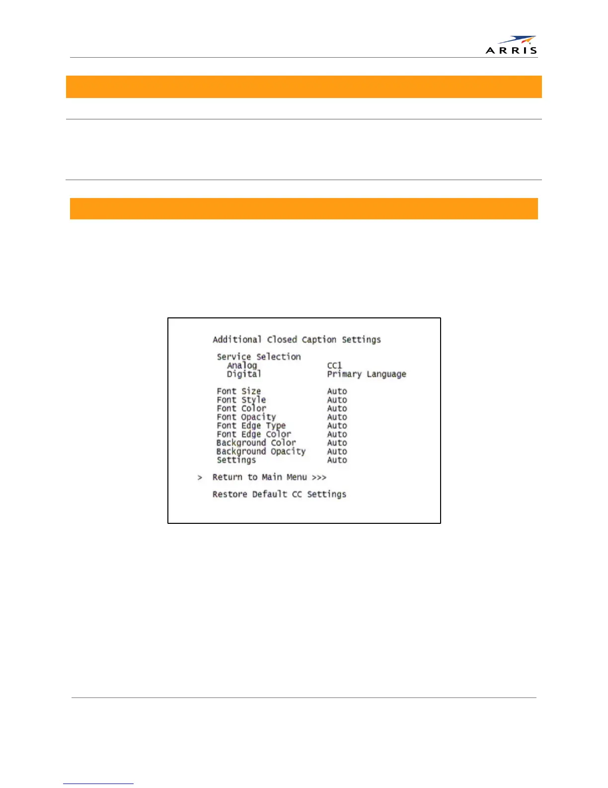 Figure 12: Additional Closed Caption Settings menu screen