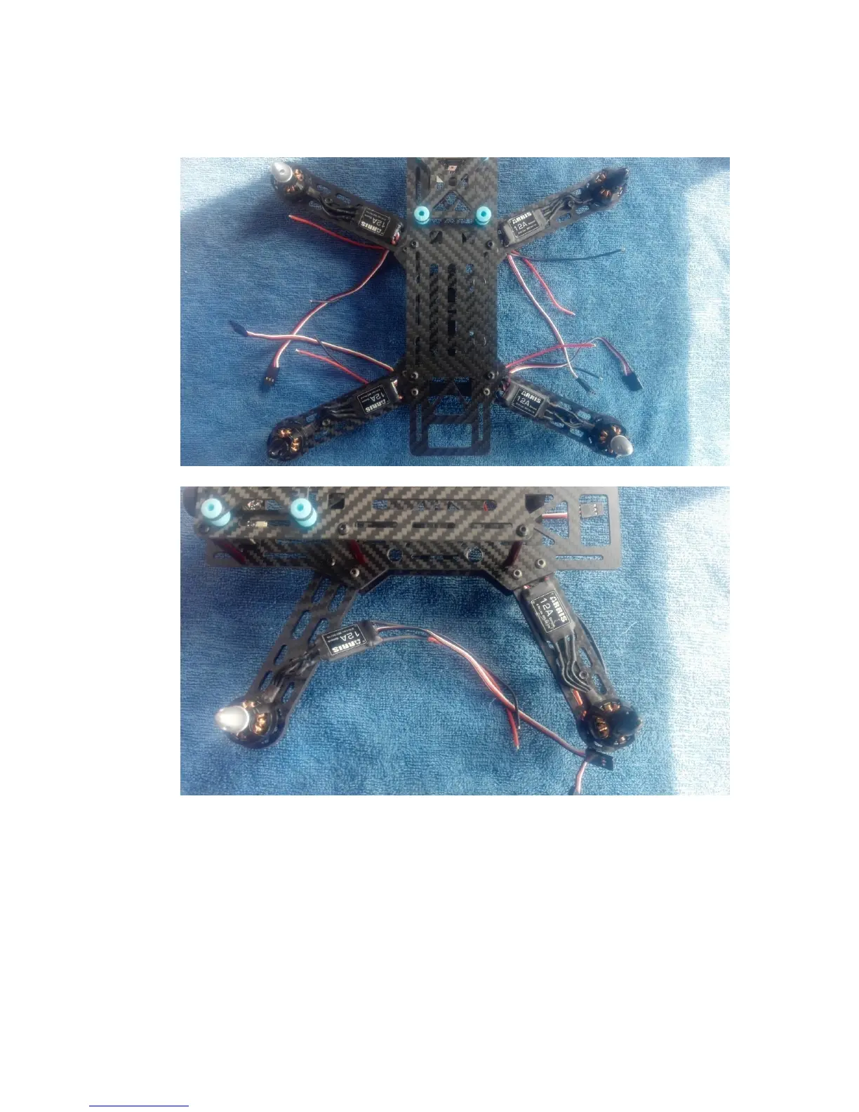 For the ESC, use the 3M double side tape to paste it on the arm. And pass the ESC
