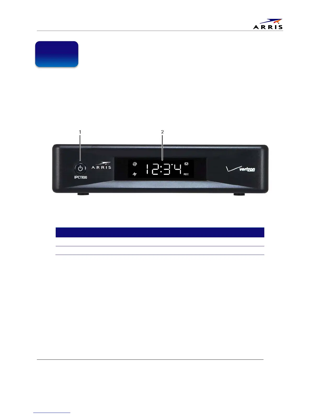 Arris IPC1100 - Overview; Front Panel; Table 2 - Front Panel; Figure 2 - IPC1100 Front Panel