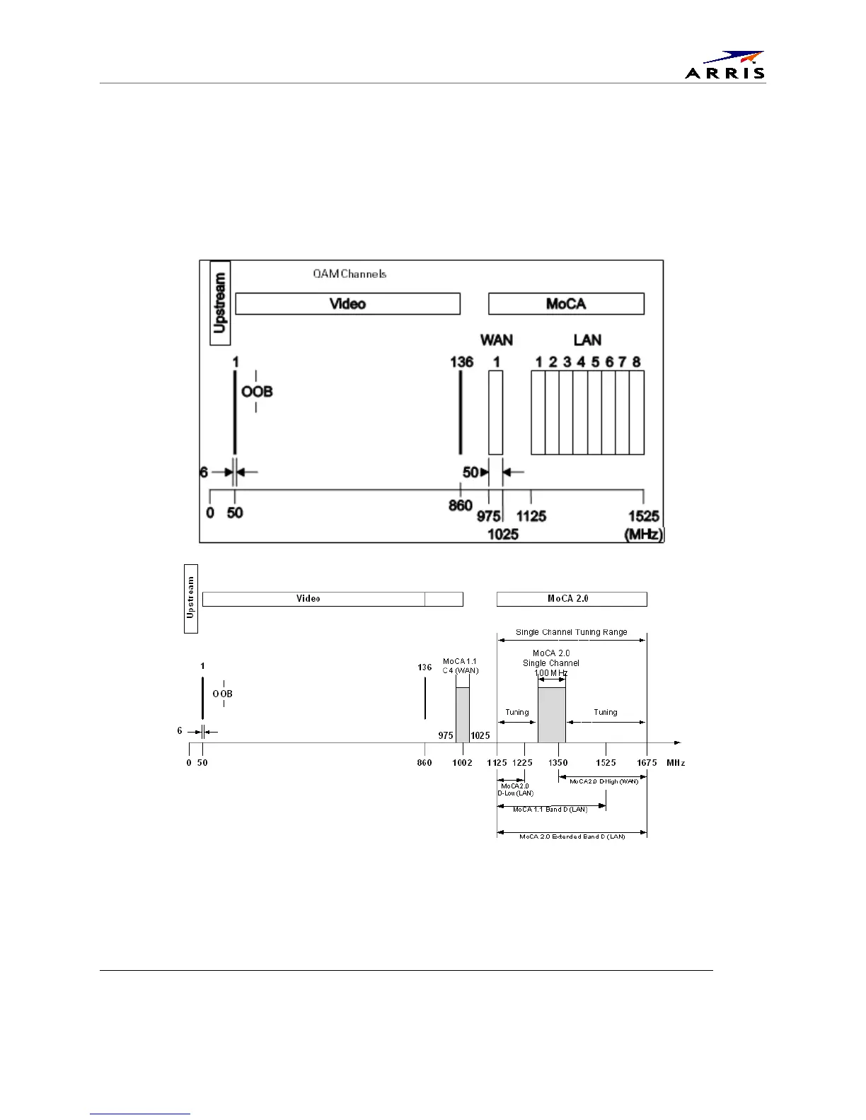 MoCA LAN when communicating with MoCA 1.x devices; and 1125 to 1225 MHz on the MoCA LAN