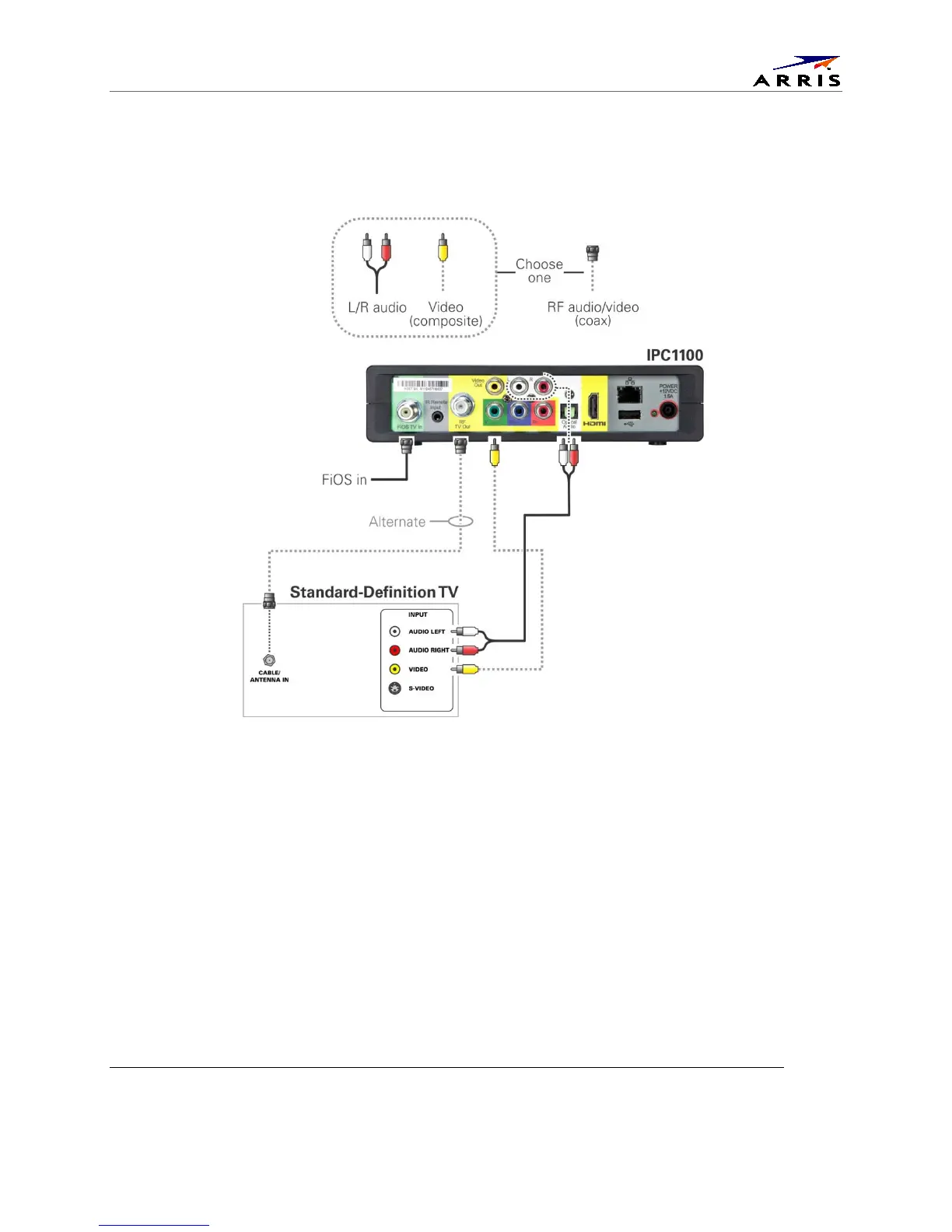 Arris IPC1100 - Cabling to a Standard-Definition TV; Figure 15 - Cabling to a Standard Definition Stereo TV
