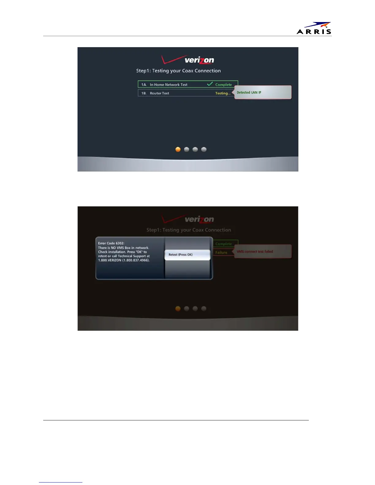 Arris IPC1100 - Figure 18 - Health Checks Begun; Figure 19 - Example Error Screen