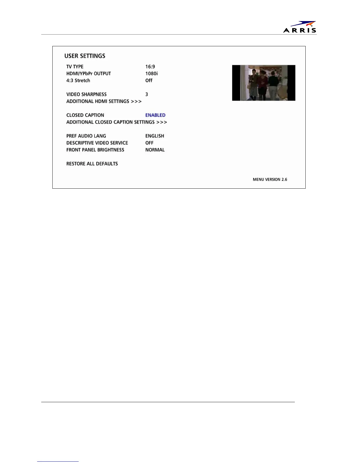 If the User Settings menu does not display on the HDTV screen, the TV may not support the default