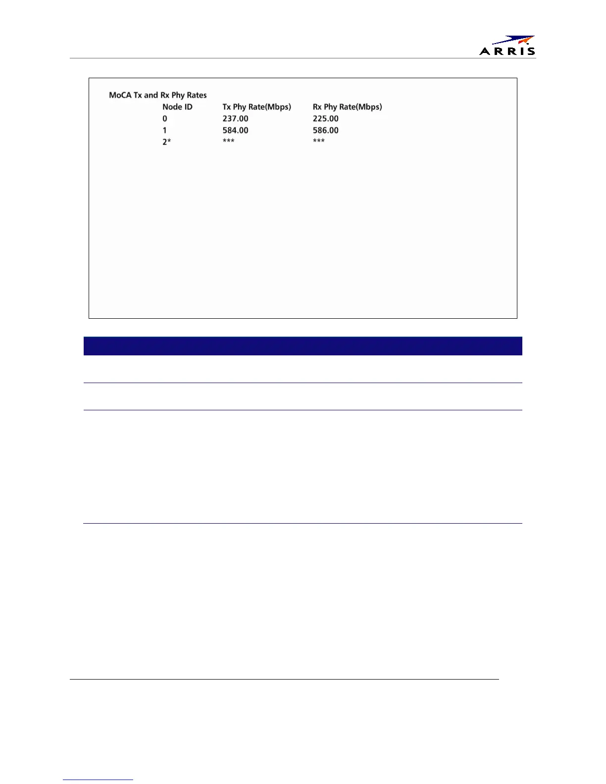 Rx Rate The physical layer receive rate by the STB being polled from the connected node (indicated by