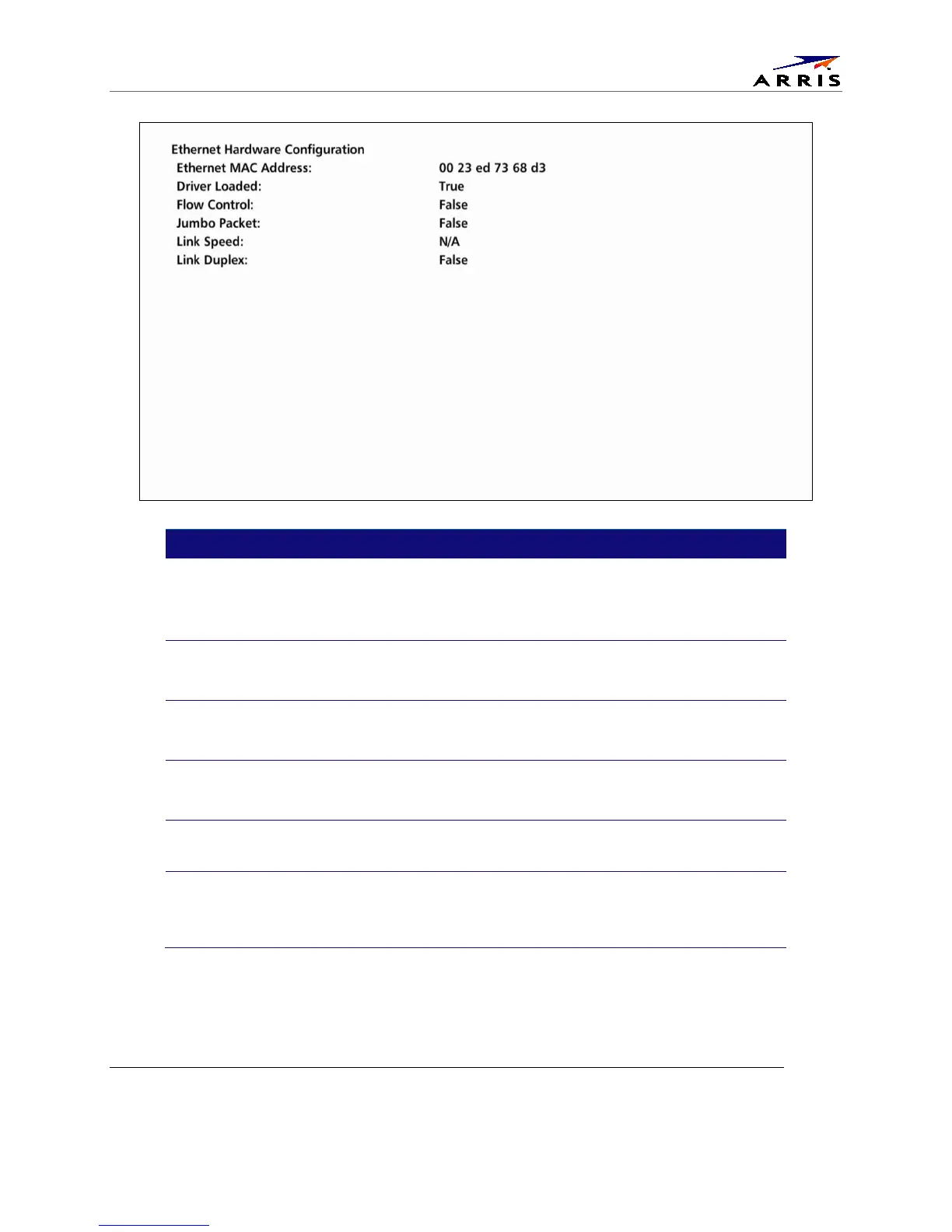 Driver Loaded This parameter indicates whether Ethernet Driver is loaded.
