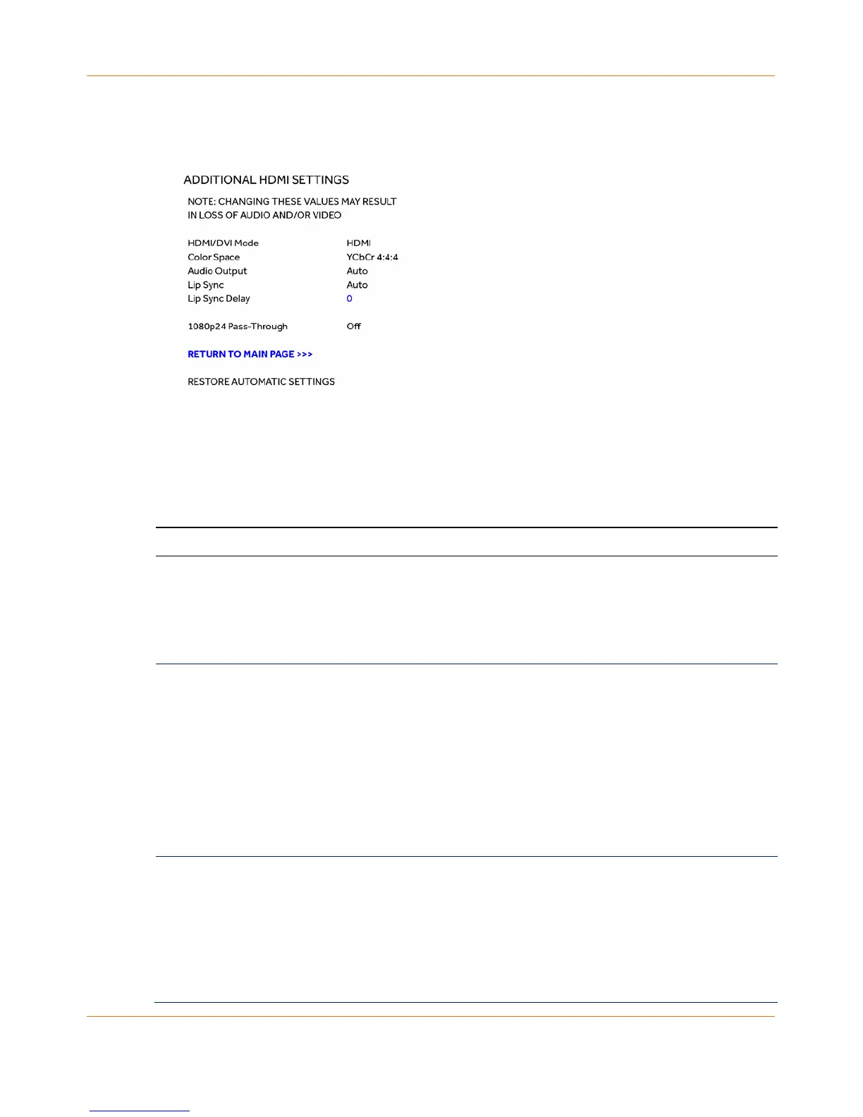 Additional HDMI Settings The Additional HDMI Settings option is available whenever an HDMI
