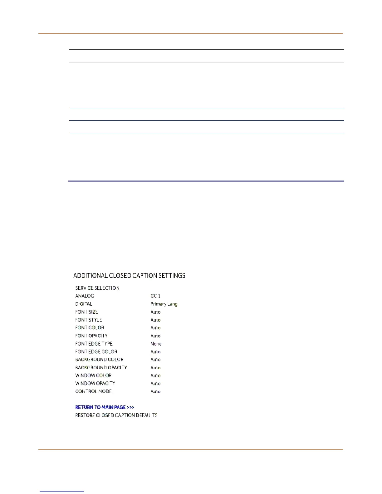The Additional Closed Caption Settings menu is used to adjust the various display options for