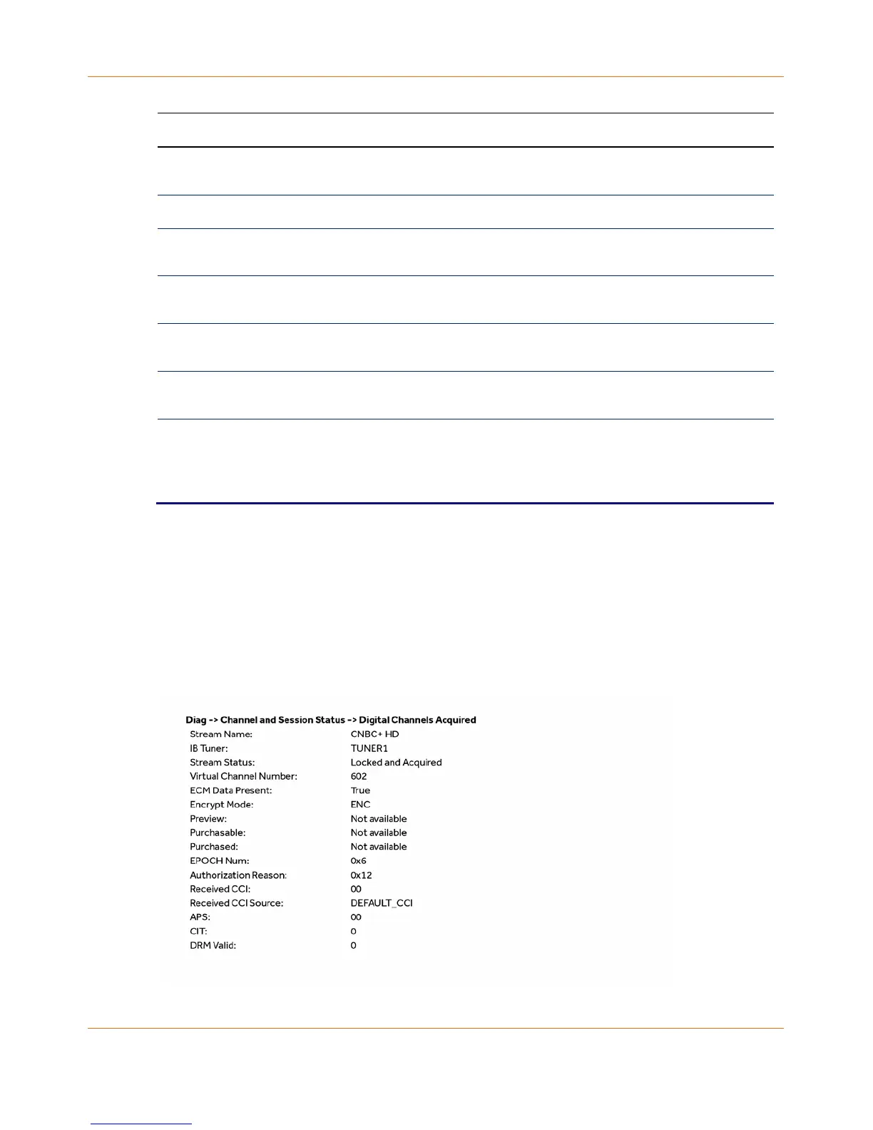 for Current Channel Status. Six screens will display for the six IB tuners and a seventh screen